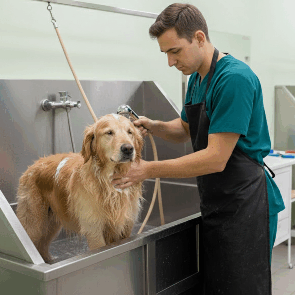 Banho e tosa com produtos de alta qualidade para um visual impecável e bem-estar total.
